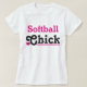Softball Chick. Vrouwelijk shirt met de kleuren: roze paars en zwart. Met een hart.