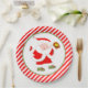 Softball themed Christmas holiday party plates featuring Mrs. Claus player catching the spirit of Christmas.