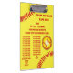 Personalised, Softball Coach Clipboard. Click "Personalise" Button to Type in Up to 27 Players Names, Coach and Team Names, Year, Thank You Softball Coach, Message or Your Text or Delete. TRANSFER this Design to over 1000 other gift ideas for softball coaches. CHANGE RED TEXT or YELLOW BACKGROUND COLORS to your softball team colours.