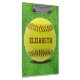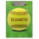 Softball Custom Ball Clipboard yellow ball with brown text you can personalise with your own name. Perfect gift to softball player
