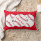 This lumbar pillow features red and white softballs surrounded by a red background. More softballs are on the back. The text reads: Softball Mum. Easily customise the text for a special sports fan or remove entirely. Great for Mother's Day or any time of year.