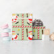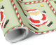 Creative softball Christmas holiday gift wrap featuring cartoon Santa fastpitch softball player at-bat.