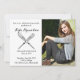 Invite guests in style with this custom softball player graduation party photo invite. This custom graduation invitation features a black silhouette of softball bats and an area for you to include a colour photo of your graduate. On the back, is a black and white abstract circle pattern which can easily be customised with a second photo of your graduate. This graduation invitation is primarily black and white an has a fancy, modern and stylish font for your graduate's name. This invitation is simple to personalise with your custom details such as the school, class year and the date/time/location of the graduation celebration! Perfect for any softball player, softball coach or any graduate who enjoys playing softball.