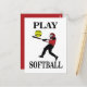 Softball Player Play Softball Postcard original design by Nisha Prabhu. Get ready to celebrate the spirit of the diamond with our vibrant postcard! Perfect for players, fans, and anyone who loves the thrill of a good game. This postcard showcases a dynamic illustration of a determined player in mid-swing, capturing the energy and passion of softball! Bold colours and dynamic design that pop off the card. Ideal for sending cheers of encouragement, team announcements, or just sharing your love for the sport. Whether it’s for a tournament, a team fundraiser, or simply to spread the softball spirit, this postcard is the perfect way to connect with teammates and friends.