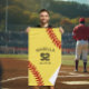 Bring team pride to the field or gym with this personalised softball towel, designed by The Arty Apples. Featuring a yellow and red stitching background inspired by a real softball, this stylish towel can be customised with the player’s name, team name, and jersey number — perfect for athletes, coaches, or fans.