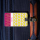 This patterned luggage tag has a softball theme and has background colours of deep and pale pink and white. Softballs and softball bats are on the front, and more softballs decorate the back. You can personalise with a name or other text on the front, and on the back add your preferred message and contact details.