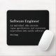 This humorous mouse pad defines what a software engineer is: "An individual who converts vague specifications and unrealistic expectations into usable software."