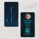 For professionals in search of Modern Monogram Software Engineer with Neon Blue tech background with the QR code. The background design features a rightward movement, symbolising your company's upward and forward trajectory.