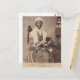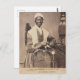 This postcard features a photo of Sojourner Truth, Dutch-African American civil rights, feminist, and abolitionist icon. In this sepia-toned photograph, she is sitting in a chair with knitting items, looking straight at the camera. She wears glasses.