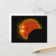 The dark shadow of the moon crosses in front of the sun during a solar eclipse captured in space and enhanced in this image.
