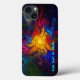 A slightly psychedelic, wavy, swirling, multi-coloured, fractal resembling electromagnetic emissions emanating from the sun. The image is superimposed on a starry background. Add your own text.