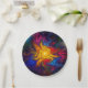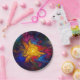 A slightly psychedelic, wavy, swirling, multi-coloured, fractal resembling electromagnetic emissions emanating from the sun. The image is superimposed on a starry background.