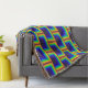 A quality printed throw has its advantages. This is a much finer weave throw than its loopier cousins, and though lighter, it is worth the investment for custom room accessorizing. The back is much prettier than the typical brown, and the fringe on the long sides very vivid, the selvage nicely done. Before photographing, I washed the throw in cold water, delicate, with a thicker woven throw the same size. On tumble dry low, this throw was dry in half the time as the other. This is a very practical quality if you use throws for furniture covers or to wrap up in frequently. The sleekness of the fabric makes it a great layer for accenting or protecting without the feeling of sitting on too much stuff. Perfect for napping or when you feel a light chill coming on. The color printing is beautiful and on this fabric, matched the design and color of my Photoshop image. This is an advantage for blending room fabrics and colors. The fringe on the short sides prints the colors from the design image and therefore varies from the side fringe. I streaked a white fractal line through the plaid pattern to give the illusion of weaving. This printed as crisp as an illusory thread, and put some white in the short side fringe, showing another advantage of print vs loomed- for artistic purposes, line lines, detail, and color integrity can be planned and preserved. My loomed throws have color limitations and more of a needlepoint texture. Print throws reproduce an exact image. The throw felt a little stiff straight out of the package, but this went away in the first delicate wash. Of course I searched the wash water for ink or bleeding and there was none.