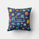 Celebrate the solar system with this cheerful outer space themed throw pillow. Pillow has a happy sun, happy planets (Mercury, Venus, Earth, Mars, Jupiter, Saturn, Uranus, and Neptune), as well as happy dwarf planet Pluto, asteroids, and stars. Personalise the pillow with your young space lover's first name.