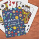 Celebrate the solar system with this cheerful outer space themed set of playing cards. Each card has a happy sun, happy planets (Mercury, Venus, Earth, Mars, Jupiter, Saturn, Uranus, and Neptune), as well as happy dwarf planet Pluto, asteroids, and stars. Personalise the set of cards with your young space lover's first name.