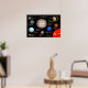 Beautiful planet and sun photos with a star photo background and fun planet and sun facts. Designed and compiled by BeautifulSpace. Facts listed include distance from sun, temperature, diameter, number of moons (if any), and number of rings (if any). Title at top says Our Solar System.