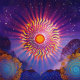 “Solar Whispers in the Sky” The Sun. A surreal depiction of the sun, its vibrant energy whispering secrets to the universe through intricate patterns and sacred geometry. Colours of red, orange, yellow and blue are balanced and create a design of other otherworldly presence.