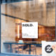 Sold Sign Commercial Realty Marketing Simple Minimalist Personalised Window Cling Sticker. It's a great way of advertising your business/service to prospective new clients when selling your properties while announcing you have SOLD a property. Customise it with your name/your real estate agent name, your phone number, your company name and other information you would like to add (such as logo or photo). The background colour and the letter colour can be changed to other colours to suit your company branding. Order yours today!