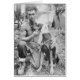 This card features a vintage photograph of an American soldier in the Pacific during World War Two. He is embracing a wounded dog that he has cared for. Blank inside.