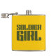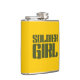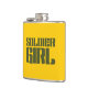 Well made flask, a little better than I had expected. Flask came in clear plastic box which gave it a nice presentation when I took it out of the zazzle packaging. Image is not printed on flask but on sticker. Don't know how this will hold up I haven't used it yet. This would make a Great gift! I plan to purchase more for friends! Cheers. I thought a little brighter than computer. Very crisp, writing wasn't