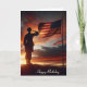 A silhouette of a soldier saluting an American flag with a dramatic sunset in the background.