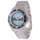 Has heft and feel of expensive stainless steel quartz watches. Good band with safety catch. I removed links, which is easy because engraved arrows show direction to push the linking pins. As always by this seller, the image (a railroad logo) is a perfect reproduction of my emailed image, and is precisely spaced and aligned.