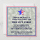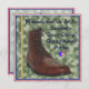 This invitation is decorated on the front with a brand new military brown boot and the words "Please Join Us At a Soldier's Boot Camp Going Away Party" superimposed on a camoflage background, and a Red, White, and Blue border.