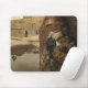 An illustrated mousepad featuring a wolf in battle-torn Iraq.