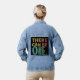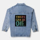 This women's denim jacket embodies the essence of singular strength and individuality with its sleek design and empowering message. Crafted from premium denim, its fitted silhouette exudes confidence, while subtle distressed accents add a touch of edgy sophistication. Embroidered on the back in bold, elegant lettering are the words "There Can Be Only One," a declaration of self-assurance and resilience. Whether paired with casual jeans for a laid-back vibe or layered over a dress for a rebellious twist, this jacket is a statement piece for the modern woman who embraces her uniqueness and refuses to be duplicated.