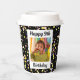 Make your child's birthday celebration even more special with these Solemnly Black Birthday Paper Cups. Featuring a stunning hand painted watercolor splatter pattern that mimics colourful confetti against a sleek black background, these cups add a touch of artistic flair to your party decor. On two opposite sides, each cup is framed with a soft, round-cornered white picture frame. Simply personalise it by replacing the placeholder photo with a picture of your birthday child. Each photo is accompanied by a "Happy [Age]th" message at the top and "Birthday" beneath, creating a heartfelt greeting. Easily customise the age and text to suit your celebration! Whether you're hosting a chic, modern birthday party or a unique themed event, these paper cups will make your celebration memorable. Perfect for serving drinks in style, while showcasing your personal touch!