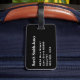 Luggage tag with name and address on a solid black background colour. Personalise with your name and address information using the easy templates. Font colour, font style, and font size are customisable.