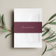 Simple, modern and elegant belly bands add a chic finish to your wedding invitations. Solid marsala burgundy bands feature your names or initials in crisp white handwritten script lettering. Designed to coordinate with our Radiant Bloom wedding invitation collection.
