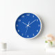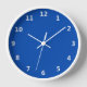 Pretty kitchen wall clock of a deep blue known as Cobalt blue. Twelve white numbers on a plain blue background. Perfect addition for a kitchen with a blue colour scheme