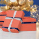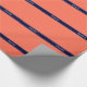 Solid Coral, Navy Blue Ribbon Name Monogram Wrapping Paper