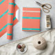 Solid Coral, Teal Ribbon Name Monogram Wrapping Paper