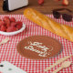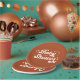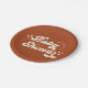 These simple, stylish baby shower paper plates feature a custom colour background (shown in terracotta), along with retro styled typography reading, "Baby Shower" in ivory. A name template is curved around the main typography, and another text template is included for the date. Little star accents add to the retro look!
