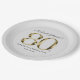 Solid Gold 80th Eightieth Text Light Grey Elegant Paper Plate