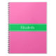 Solid Hot Pink #2 Emerald Green Rbn Name Monogram Spiral Notebook
