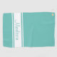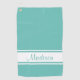 This design has a solid background colour of light teal with white and light teal stripes. The name is in a script font and can be customised using the template field.