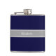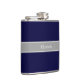 Solid Navy Blue, Dark Grey Ribbon Name Monogram Hip Flask