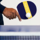 Solid Navy Blue, Pineapple Ribbon Name Monogram Ping Pong Paddle