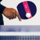 Solid Navy Blue, Raspberry Ribbon Name Monogram Ping Pong Paddle