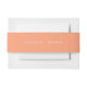 Trendy solid colour peach cantaloupe, wedding invitation belly bands. Customise text font style, colour and size.