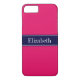 Solid Raspberry, Navy Blue Ribbon Name Monogram Case-Mate iPhone Case
