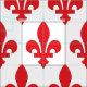 Fabric with red fleur-de-lis (fleur-de-lys or lily flower) symbol, mardi gras design on white background
