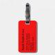 Luggage tag with name and address on a solid red background colour. Personalise with your name and address information using the easy templates. Font colour, font style, and font size are customisable.
