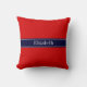 Solid Red, Navy Blue Ribbon Name Monogram Cushion