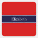 Solid Red, Navy Blue Ribbon Name Monogram Square Sticker