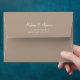 A customisable solid taupe 5X7 envelope with a white lining inside. This personalised elegant tan envelope is a classy way to send invitations.