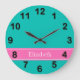 Solid Teal, Hot Pink #2 Ribbon Name Monogram Large Clock